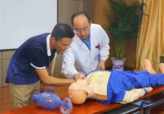 結(jié)合施工企業(yè)一線職工的工作特點(diǎn),來自漢陽(yáng)醫(yī)院的專家們有針對(duì)性的進(jìn)行了授課準(zhǔn)備,用通俗的語(yǔ)言和細(xì)致的互動(dòng)式教學(xué),從現(xiàn)場(chǎng)心肺復(fù)蘇、胸外心臟按壓、創(chuàng)傷的現(xiàn)場(chǎng)救護(hù)、常見的急癥處理及意外傷害五個(gè)方面為大家講解了不同情況下應(yīng)該采取的急救措施。“大家注意,心肺復(fù)蘇每次必須做五個(gè)輪回,做完之后需要判斷病人是否清醒,按住病人頸動(dòng)脈,以四個(gè)音節(jié)為單位開始數(shù)數(shù),比如1001、1002、1003、1004……”,培訓(xùn)現(xiàn)場(chǎng),來自江城大道項(xiàng)目的安全員代建平被邀請(qǐng)上臺(tái)進(jìn)行胸外心臟按壓體驗(yàn),專家一面觀察他的操作一面帶領(lǐng)大家再次回顧操作步驟及需要注意的問題。在培訓(xùn)結(jié)束時(shí)代建平說:“這樣的培訓(xùn)確實(shí)讓我學(xué)到了不少東西,今后在施工現(xiàn)場(chǎng),如果遇到突發(fā)事故也能抓住施救的黃金時(shí)間對(duì)傷員進(jìn)行救治?!睂<覀冞€強(qiáng)調(diào),每個(gè)人都需要掌握正確、規(guī)范的安全急救技能,如果沒有相關(guān)的知識(shí)就盲目地進(jìn)行施救,很容易對(duì)傷者造成二次傷害,為后續(xù)治療帶來麻煩。