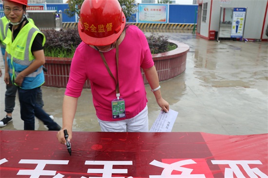 活動中,質(zhì)安部部長朱波首先向大家宣貫了《天創(chuàng)公司2017年安全生產(chǎn)月活動方案》,本年度“安全月”將舉辦包括安全微黨課、安全教育、安全演練、我為安全獻(xiàn)一策等在內(nèi)的共計17項活動,朱部長根據(jù)活動提綱對活動的開展提出了具體要求。質(zhì)安部羅冰隨后帶領(lǐng)現(xiàn)場全體人員進(jìn)行了莊嚴(yán)的安全生產(chǎn)月活動宣誓,并在安全生產(chǎn)月主題“全面落實企業(yè)安全生產(chǎn)主體責(zé)任”橫幅上簽名。