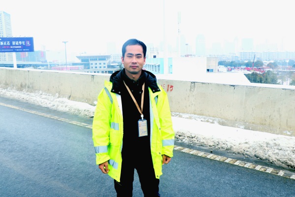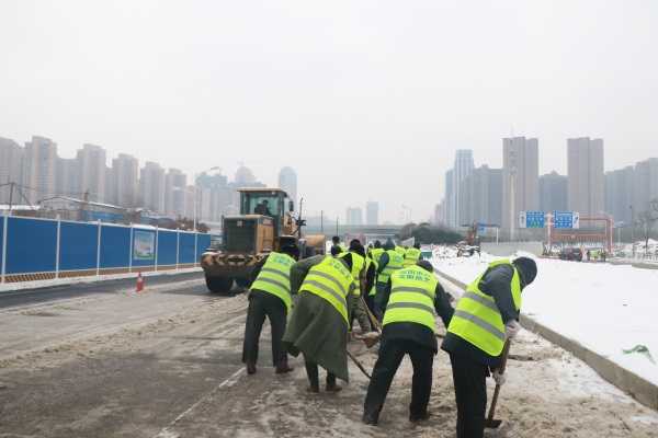 27日上午,來自向陽東路項(xiàng)目的施工員馮凌杰在參加完武漢市首屆職工春晚節(jié)目《幸福工程》情景劇的彩排后,第一時間趕到了除雪一線,全身心的投入到江城大道的除雪工作中。指揮作業(yè)、分導(dǎo)車流、引導(dǎo)機(jī)械,寒風(fēng)中,他額頭居然滲出汗來。“這條雙向六車道的路還有三公里的積雪要清除,早點(diǎn)清理完市民們出行就方便很多?!彼f話的間隙路上駛過一輛公交車,乘客們臉上露出的欣喜和微笑大概就是給這支除雪隊(duì)伍最好的褒獎。