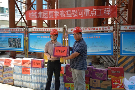 2018年入夏以來,武漢遭遇了持續(xù)的高溫天氣,局部氣溫攀升到了37攝氏度以上。作為武漢市城建重點項目之一,寶硚項目的建設工作在高溫環(huán)境下也沒有絲毫松懈,施工現(xiàn)場仍然是一幅擼袖大干的景象。6月27日上午,武漢市城投集團總經(jīng)理助理李衛(wèi)、橋建集團董事長朱明剛一行來到漢陽市政集團寶硚項目施工現(xiàn)場,為奮戰(zhàn)在施工一線的工人們送去飲用水、綠豆、白糖、防暑藥物等慰問物資。