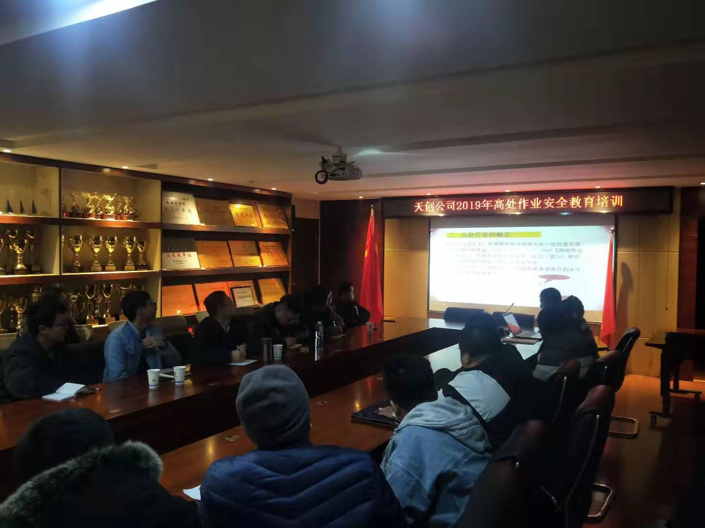 為全面做好安全生產(chǎn)管理工作,切實(shí)增強(qiáng)安全管理人員的責(zé)任感、使命感和緊迫感,確保各項(xiàng)安全工作落到實(shí)處,2019年12月28日下午6時,天創(chuàng)公司在二號會議室組織開展了高處作業(yè)培訓(xùn)。