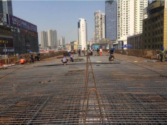 寶豐路硚口路快速化(建設(shè)大道~京漢大道)改造工程解放大道首聯(lián)預(yù)應(yīng)力箱梁今日澆筑