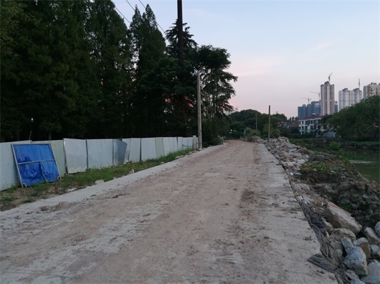 該工程渠道位于青山公園內(nèi)部,為處理渠道內(nèi)積存的大量淤泥,項(xiàng)目部安排兩條清淤船24小時(shí)不停歇地進(jìn)行清淤工作,目前已完成樁號(hào)6+825~6+457段清淤共21000方。在樁基施工斷面,現(xiàn)場水泥攪拌樁機(jī)正以一天1000米左右的速度持續(xù)推進(jìn),截至7月下旬,該工程已完成1號(hào)橋全部8根樁基的施工任務(wù)。為方便機(jī)械和施工材料進(jìn)出,該項(xiàng)目部在渠道邊澆筑了一條220米長的混凝土施工便道,極大的提高了現(xiàn)場運(yùn)輸工作效率。