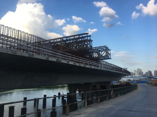 入夏之后,墨水湖北路工程項目部為各施工隊伍制定了新的作息時間,避開了上午11點至下午3點半這段一天中最熱的時段,在保證員工正常作息的同時,也提高了工作效率。截至7月中旬,該工程漢陽大道段已完成所有預(yù)應(yīng)力箱梁施工、龍陽湖棧橋段本月施工樁基12根,承臺3個,墩柱2個,箱梁支架安裝3聯(lián),模板安裝2聯(lián) ,鋼筋綁扎1聯(lián);龍陽湖到摩爾城段累計完成樁基施工58根,承臺20個,墩柱20個,開始進(jìn)行5聯(lián)箱梁的支架搭設(shè)、模板安裝及鋼筋綁扎等工作,其中玉龍路處107米箱涵施工已完成,項目部正著手準(zhǔn)備箱涵驗收工作。