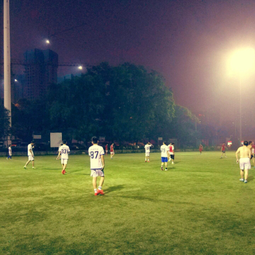 當(dāng)我跟著天創(chuàng)公司足球隊一起走進新華路的球場時,驀地想起上一次認認真真踢一場球還是在小學(xué)時代。那時候每天做值日的地方是一塊小草坪,兩端各是貼著草坪邊界種下的一排香樟,稍微居中的兩棵樹的間隙正好被我們拿來當(dāng)做球門,男孩子們每天中午都會在這兒踢到響鈴然后狂奔到教室。當(dāng)時班里大部分男孩子都是巴薩球迷,羅納爾迪尼奧是這群孩子一致的偶像,我也不例外,總會在放學(xué)后一遍又一遍跟著小伙伴們在草坪上模仿小羅的牛尾巴過人和踩單車,仿佛永遠不會覺得累。2006年巴薩有一場對陣比利亞雷亞爾的比賽,羅納爾迪尼奧在比賽的最后時刻完成了一記精彩的倒鉤射門,這粒進球讓我真切地見識到了這項運動獨特的魅力,我也開始能理解,為什么我的叔叔們在看球的時候會有那樣忘情的吶喊。