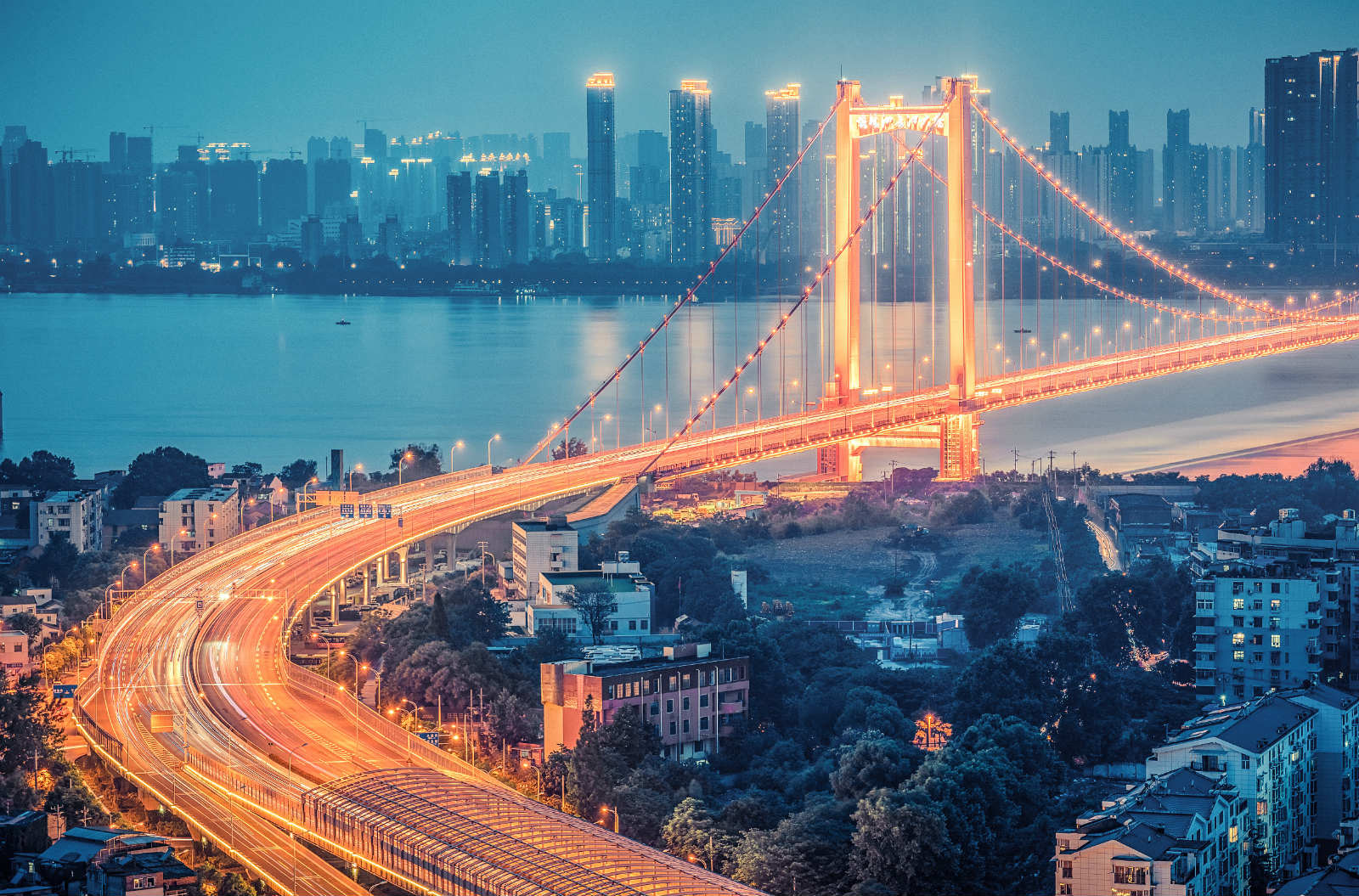 武漢鸚鵡洲長江大橋是武漢第8座長江大橋,項目總投資為90億元,該橋位于長江大橋上游約2公里處,正橋工程北接漢陽岸鸚鵡大道,南接武昌岸復興路,是規(guī)劃的新內環(huán)線的重要組成部分。S5標段引橋工程位于漢陽岸邊,全長595米;S6標段引橋工程位于武昌岸邊,全長725米。正橋全長3420米,其中主橋長2100米,引橋長1320米,為主跨850米的三塔四跨懸索橋,是世界上跨度最大的三塔四跨懸索橋。