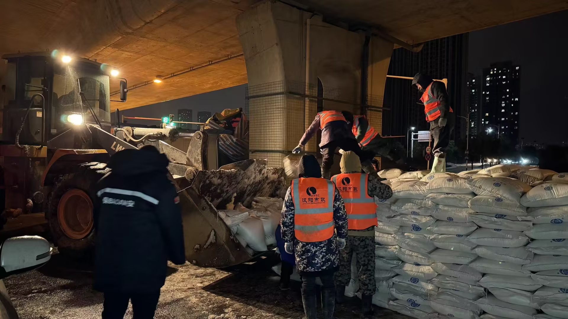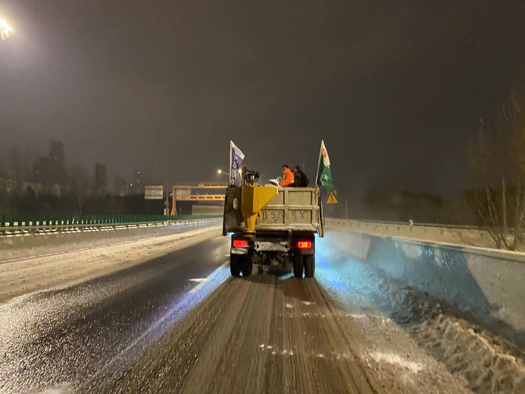 以雪為令,截至22日上午,文化長廊項目部共出動應急人員19人,撒布機3臺,鏟車2臺,撒布融雪劑15噸,保障洪山區(qū)白沙洲武金提立交橋到廟山立交橋(13km)道路通暢。