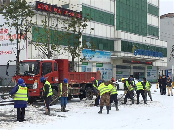 1月27日上午8時許,武漢天創(chuàng)市政正在公司會議室召開一年一度的工作研討會,面對大雪紛飛的極端天氣,公司領(lǐng)導毅然決定暫停會議,自覺組織全體項目以最快的速度奔赴漢陽大道進行緊急掃雪除雪,發(fā)動一切力量、以最短的時間還市民一條安全、暢通的道路。