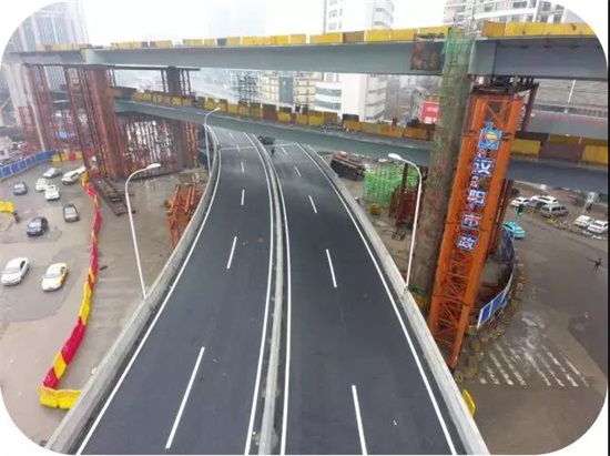 寶豐路硚口路快速化(建設(shè)大道~京漢大道)改造工程起于京漢大道,止于建設(shè)大道(全長約1.44千米),設(shè)有寶豐路四層互通立交一座,涉及解放大道改造長度約1.05千米。另外,位于解放大道路口東南象限的現(xiàn)狀地下人防工程需同步改造。工程共157個(gè)墩柱,有花瓶型雙柱墩、門型雙柱墩、雙柱墩、門型單柱、獨(dú)柱花瓶墩等幾十種不同的結(jié)構(gòu)形式,形式變化多端,其增添了城市的韻律。且高墩柱高墩柱結(jié)構(gòu)砼內(nèi)實(shí)外光,平整度、垂直度最大偏差1.5mm,觀感質(zhì)量好。四層立交橋規(guī)模宏大、線性流暢、雄偉壯觀,鋼結(jié)構(gòu)與現(xiàn)澆預(yù)應(yīng)力砼箱梁、地面道路等多種結(jié)構(gòu)形式與周圍環(huán)境相得益彰。工程對(duì)硚口路道路進(jìn)行拓寬,增加道路綠化,美化人行道,即解決了硚口路的道路擁堵,又為武漢市迎接軍運(yùn)會(huì)增添了美麗。