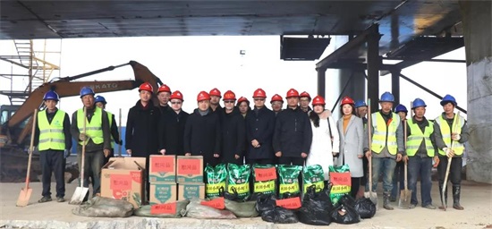 瑞犬報(bào)捷去,金豬送春來(lái),2月5日是農(nóng)歷大年初一,上午10時(shí)許,漢陽(yáng)市政集團(tuán)公司黨委書(shū)記、董事長(zhǎng)嚴(yán)悌文一行來(lái)到東西湖區(qū)金山大道(九通路~機(jī)場(chǎng)路)改擴(kuò)建工程五環(huán)立交施工現(xiàn)場(chǎng),向節(jié)日期間堅(jiān)守一線的現(xiàn)場(chǎng)管理人員和民工班組送去了親切的問(wèn)候,并贈(zèng)送了大米、食用油、毛巾等慰問(wèn)品。天創(chuàng)公司支委會(huì)書(shū)記、董事長(zhǎng)、總經(jīng)理程強(qiáng)、支委會(huì)副書(shū)記肖三秀、副經(jīng)理兼工會(huì)主席程金雄、金山大道項(xiàng)目負(fù)責(zé)人劉吉祥等人陪同慰問(wèn)。