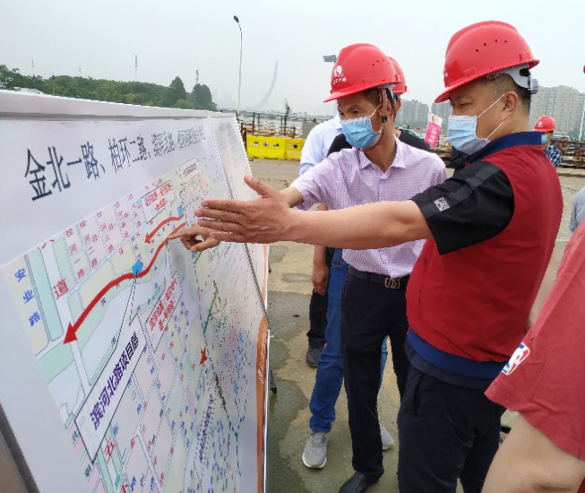 5月25日下午,武漢臨空港經(jīng)濟(jì)技術(shù)開(kāi)發(fā)區(qū)管委會(huì)副主任、東西湖區(qū)人民政府副區(qū)長(zhǎng)郭小平一行至張柏公路改建工程徑河橋項(xiàng)目開(kāi)展安全生產(chǎn)調(diào)研工作,漢陽(yáng)市政二公司總經(jīng)理鄒勇陪同調(diào)研。此次調(diào)研主要檢查該項(xiàng)目復(fù)工復(fù)產(chǎn)以來(lái)疫情防控措施落實(shí)情況、文明施工安全生產(chǎn)情況以及“三個(gè)紅袖章”制度落實(shí)情況,項(xiàng)目現(xiàn)場(chǎng)負(fù)責(zé)人張西林一一進(jìn)行詳細(xì)講解匯報(bào)。(天創(chuàng)公司 各部門/各項(xiàng)目部)