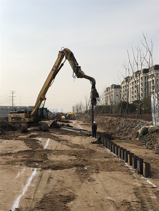 經(jīng)過前期緊鑼密鼓的準(zhǔn)備,朱家新港路道排工程于2018年2月正式開工建設(shè),計(jì)劃于2018年12月底完工。自2月上旬進(jìn)場(chǎng)至今,該工程已完成7500方的渣土外運(yùn)及115米斷面的碎石墊層換填和路基回填工作。目前,該項(xiàng)目現(xiàn)場(chǎng)6臺(tái)挖掘機(jī)、2臺(tái)壓路機(jī)、2臺(tái)樁機(jī)同時(shí)作業(yè),正進(jìn)行地基處理及雨、污水溝槽開挖與支護(hù)施工,預(yù)計(jì)于4月下旬開始排水工程施工。