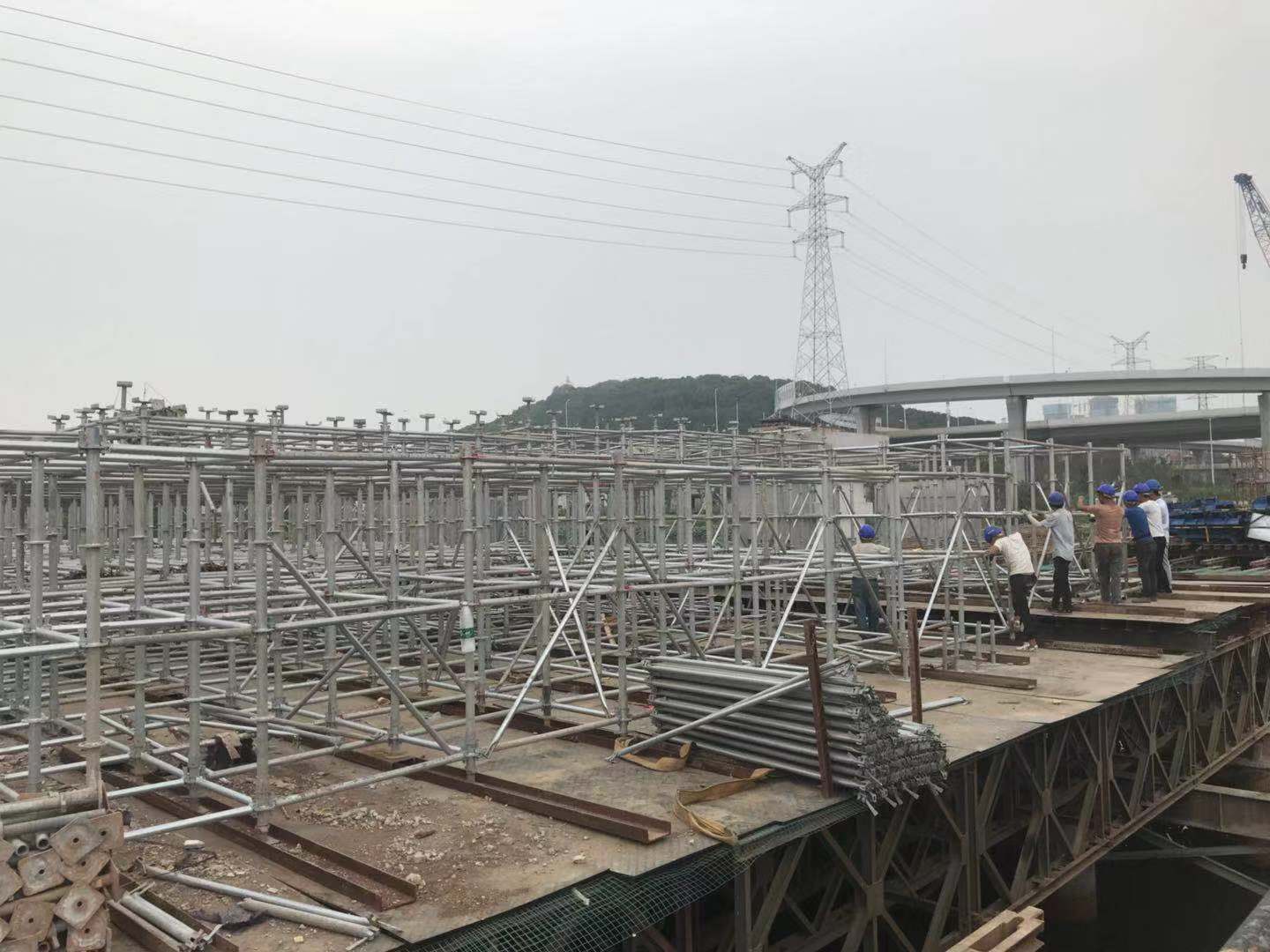 盤扣式支架具有內(nèi)外熱鍍鋅工藝,承載力大、穩(wěn)固性極高、無零散配件、省料省時便于管理等特點,整體架體集形象美觀、安全、高效于一體。盤扣支架功能齊全、應(yīng)用廣泛、安全性能高、使用壽命長、作業(yè)空間大,在大型橋梁結(jié)構(gòu)施工過程中,對高空作業(yè)人員的安全作業(yè)可起到雙保險的作用。