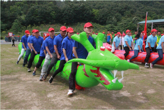 在拓展活動開始前的團隊展示環(huán)節(jié),“雄鷹隊”隊員們高聲吶喊的“雄鷹展翅、步步高升、天降大任、創(chuàng)世輝煌”響亮口號便喊出了天創(chuàng)市政的精氣神,根據(jù)勵志歌曲《步步高》改編的隊歌更是唱出了天創(chuàng)人敢為人先的強大氣勢,為團隊在接下來三個拓展項目中的精彩表現(xiàn)打響了開頭炮。在“挑戰(zhàn)150”項目中,“雄鷹隊”隊員們積極出謀劃策、協(xié)商戰(zhàn)術(shù),經(jīng)過合理分工、有序安排和緊湊組織,最終僅用時1分41秒便順利完成“集體跳蠅”、“不倒森林”、“同甘共苦”等5個小項目的比拼任務(wù)。隨后,“雄鷹隊”巧妙安排男、女參賽隊員,并以最快速度調(diào)轉(zhuǎn)“龍頭”,以54秒的成績出色完成“陸地龍舟”項目,在10支隊伍中用時最短。最后一個項目是“四方拔河”,“雄鷹隊”隊員們面對“勁敵”毫不畏懼,卯足干勁,在聲嘶力竭的“加油”助威聲中咬牙堅持,在經(jīng)歷“復(fù)活賽”后獲得該項目第二名。