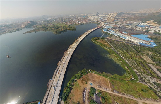 是知上下同心,非一人之力;長橋和龍,誠眾人之功。四時(shí)一,千載同。晨起朝露里,夜伏暮色中。兩岸青山劫慍色,一湖碧水解愁容。鐵軍精神,非環(huán)境之能阻;眾志成城,豈困苦之可當(dāng)。日夜鏖戰(zhàn),攻堅(jiān)克難筑坦途;春秋迭代,披荊斬棘成大道。聚若一團(tuán)火,散如滿天星。