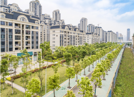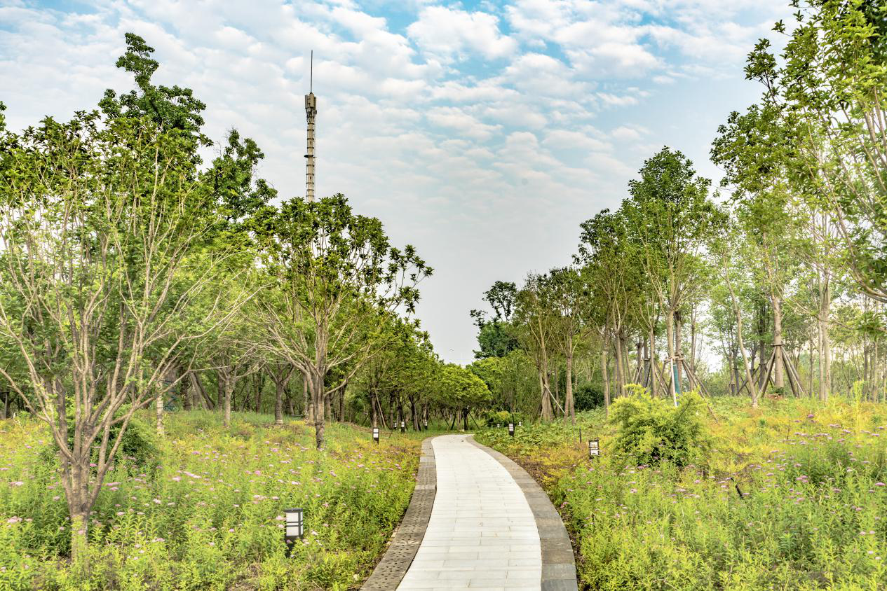 該工程位于武漢市城市副中心之一的四新生態(tài)城。西起龍陽大道,東至江堤中路,全長4.6公里,共分為十個地塊,綠化面積22.1653萬平方米,于2018年4月13日開工,于2019年12月10日竣工驗收。該工程除采用常規(guī)深挖坑、淺埋植、客土法、搭防曬涼柵、疏枝、打葉等措施外,另用ABD生根粉、活力劑、保水劑等新型制劑對植物根系進(jìn)行處理,同時用點(diǎn)滴插管技術(shù),直接向樹體注入氨基酸、營養(yǎng)劑等手段?;睿瑯淠境苫盥蔬_(dá)95%。地被與喬木交相輝映,移步換景,春有櫻花爛漫,夏有綠樹成蔭,秋有丹桂飄香,冬有紅梅迎春,形成了蔥郁茂密、四季花香的綠化效果。