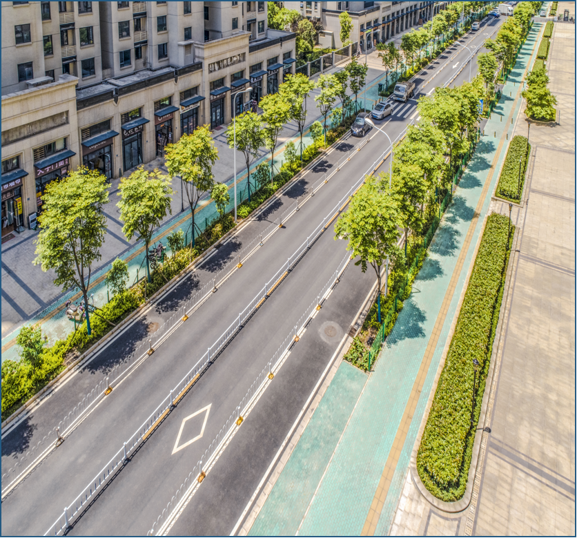 墨竹路(湯山路-四新大道)道路工程施工范圍西起湯山路,沿線與車友路、朱家新港路平面交叉,南至四新大道,全長約1072米。其一標(biāo)段于2017年3月1日開工建造,2019年5月27日完工。二標(biāo)段于2017年5月28日開工建造,2019年7月25日完工。完工后的墨竹路已經(jīng)成為了一張綠意盎然的城市名片。
