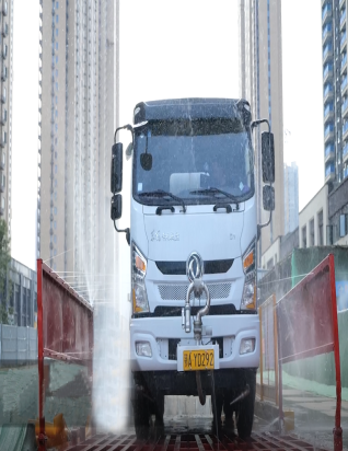 施工門樓整潔大方,“七牌一圖”規(guī)范整齊;量身定制安全帽架,安全帽正確佩戴方能入場;全自動洗車槽方便實用,施工車輛進(jìn)出煥然一新;高機動性移動水車隨時在崗沖洗便道;排水邊溝美觀實用,環(huán)境保護(hù)自然得體。