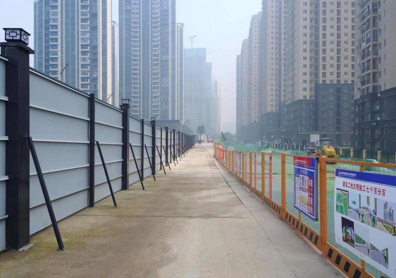 各項目始終堅持“七個百分百”原則,對施工便道進(jìn)行百分百硬化,非作業(yè)區(qū)裸土做到百分百覆蓋;施工區(qū)設(shè)置揚塵在線監(jiān)控系統(tǒng)、智能噴淋除塵系統(tǒng),并輔以噴淋除塵霧炮機協(xié)同作業(yè),可對工地現(xiàn)場局部揚塵區(qū)域進(jìn)行針對性的降塵處理,避免揚塵污染;基坑臨邊防護(hù)統(tǒng)一設(shè)置定制式標(biāo)準(zhǔn)護(hù)欄,懸掛安全警示牌等,確保安全作業(yè)。