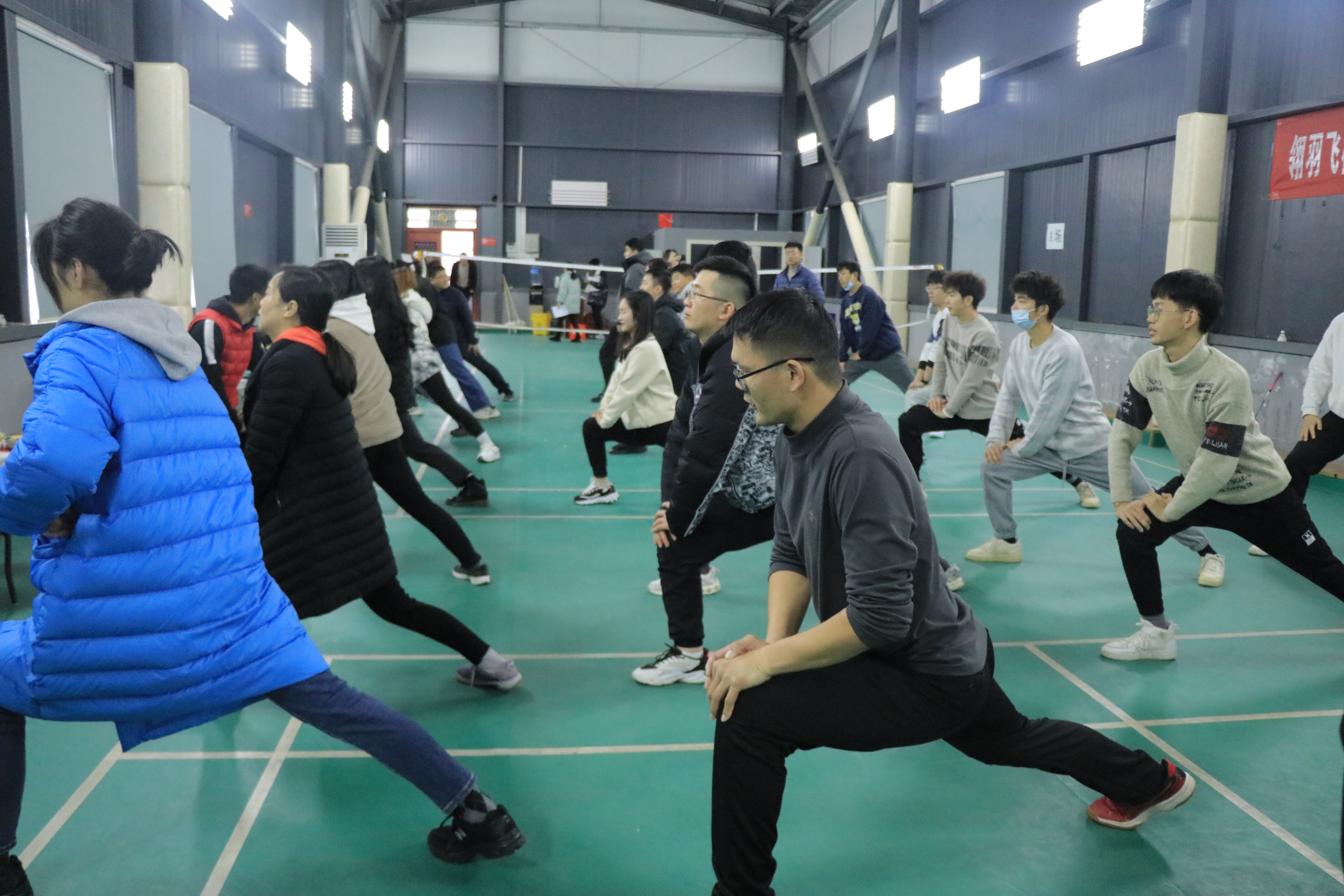 羽毛球是全身運(yùn)動(dòng),賽前熱身少不了。早上8點(diǎn),參賽人員便早早來(lái)到球場(chǎng),在裁判員的帶領(lǐng)下進(jìn)行拉伸練習(xí)、發(fā)球示范等,為進(jìn)入良好參賽狀態(tài)做好準(zhǔn)備。