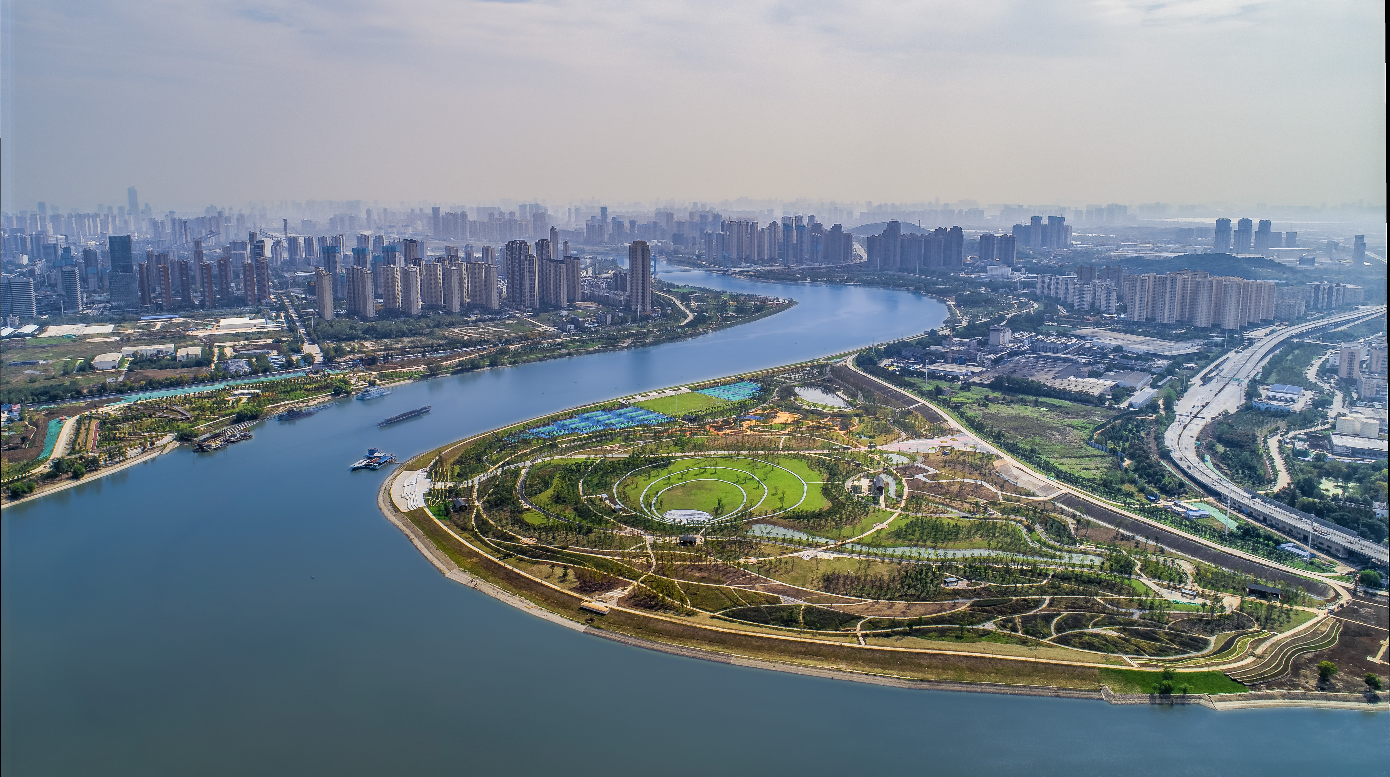 該工程全長3100米,囊括江漢六橋至長豐橋堤段,使用5類新技術,節(jié)約利用磚塊鋪設防洪,整修土地進行綠化。項目響應生態(tài)建設口號,開啟百里長江生態(tài)廊道,增加市民運動休閑場所,帶動城市發(fā)展步伐,呈現(xiàn)出“一帶兩軸三環(huán)六核心”的局面。