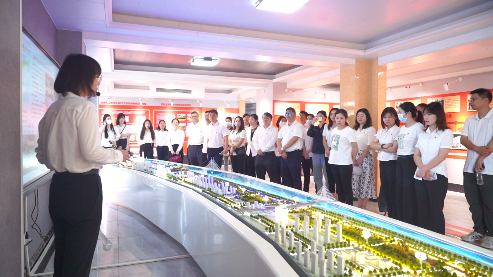 黨員們駐足沙盤前,聽取項目運營情況介紹。