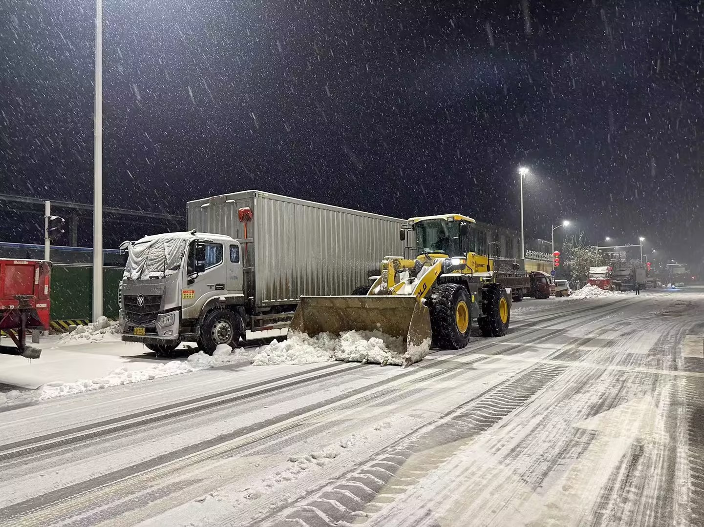 以雪為令迎寒上,晝夜鏖戰(zhàn)保暢通。根據(jù)天氣預(yù)報(bào),未來幾天仍將繼續(xù)降雪,天創(chuàng)建設(shè)將以分秒必爭的精神在寒風(fēng)中砥礪前行,在驟雪中磨練尖兵,用飽滿的工作熱情和忘我的奉獻(xiàn)精神書寫屬于建設(shè)者責(zé)任與擔(dān)當(dāng),確保“雪中路通、雪停路清、雪后不滑”,為廣大市民的安全出行保駕護(hù)航。
